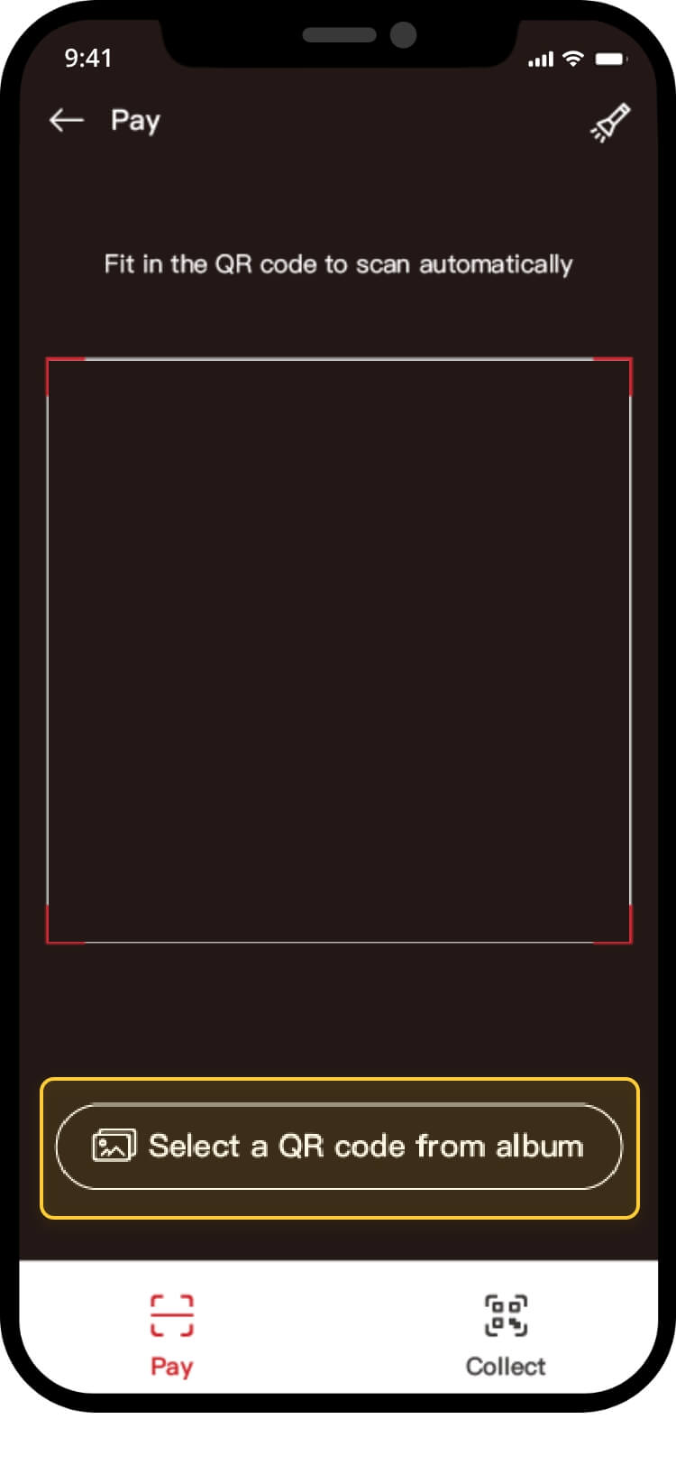 you don’t need to log on! tap “FPS transfer” from the bottom-left and select “scan to pay”