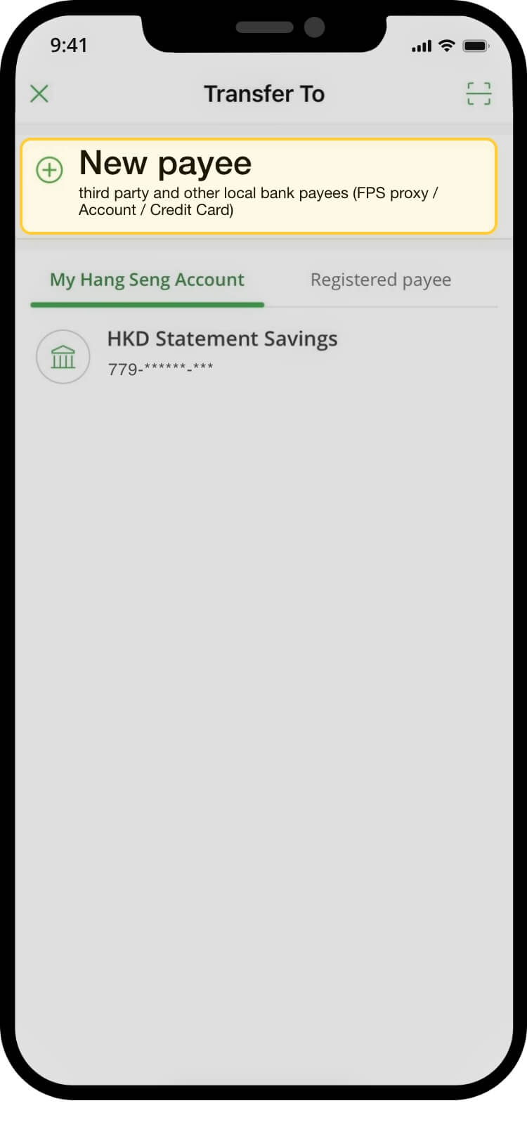 log on your HSBC account! tap “Other local payees/FPS” at “Pay & Transfer” in bottom menu